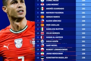 體育資訊10月10日訊 德國轉(zhuǎn)會市場盤點(diǎn)了新世紀(jì)國家隊(duì)出場數(shù)排行情況,C羅以223場居首,梅西194場次之,莫德里奇191場位居第三。