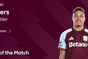 本場(chǎng)比賽上半場(chǎng)維拉球員羅杰斯打進(jìn)遠(yuǎn)射世界波,賽后他也當(dāng)選英超官方球迷票選全場(chǎng)最佳球員。