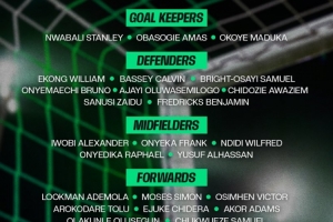 前鋒:盧克曼(亞特蘭大)、摩西-西蒙(巴黎FC)、奧斯梅恩(加拉塔薩雷)、阿羅科達(dá)雷(狼隊(duì))、埃尤克(塞維利亞)、阿科爾-亞當(dāng)斯(塞維利亞)、奧盧塞貢(下諾夫哥羅德)、丘庫埃澤(富勒姆)
