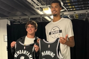 本場比賽,德克薩斯大學(xué)橄欖球隊(duì)球員阿奇·曼寧等人現(xiàn)場觀看了本場比賽,并受到了文班亞馬及福克斯的接待。星三代阿奇·曼寧還和文班互換了球衣。