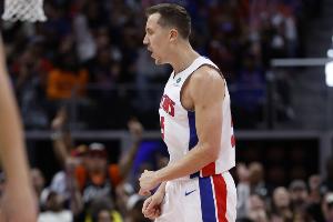 活塞球員鄧肯·羅賓遜本場(chǎng)比賽手感不太理想,第一節(jié)三分6投全鐵,最后一節(jié)才找到三分手感,不過他最后絕平三分被帽。
