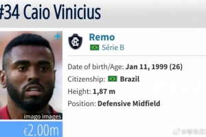 卡約現(xiàn)年26歲,在場上司職后腰,效力于巴乙瑞模貝雷,上賽季共出戰(zhàn)了28場巴乙聯(lián)賽,打進(jìn)5球助攻2次,目前德轉(zhuǎn)身價為200萬歐。