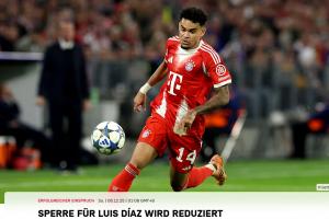 體育資訊12月06日訊 拜仁官方消息,迪亞斯歐冠禁賽上訴成功,禁賽由3場(chǎng)縮短至2場(chǎng)。