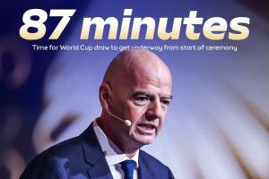 世界杯抽簽儀式于今晨舉行,據(jù)天空體育統(tǒng)計,本次抽簽儀式從開始到抽出第一支球隊共耗時87分鐘,幾乎和一場足球比賽時間一樣長。