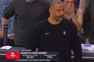 本賽季烏度卡挑戰(zhàn)32次,成功24次(聯(lián)盟最多)。成功率75%。