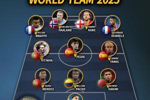 體育資訊12月28日訊 IFFHS(國(guó)際足球歷史和統(tǒng)計(jì)聯(lián)合會(huì))近日公布了2025年年度最佳陣容評(píng)選結(jié)果,姆巴佩、哈蘭德、凱恩、登貝萊等11人入選。