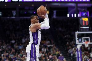 此役,威少出戰(zhàn)28分鐘,投籃16中8,三分9中5,得到21分5籃板9助攻1搶斷。