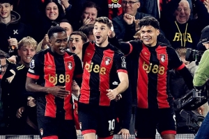 在英超第7輪率先開打的一場比賽中,伯恩茅斯憑借塞梅尼奧的梅開二度以及小克魯伊維特的進球,主場逆轉富勒姆。首輪輸給利物浦時,伯恩茅斯曾被很多媒體預測為本賽季的降級大熱門,但伊勞拉和弟子們很快以6輪不?。?勝2平)的表現(xiàn)粉碎了輿論的質疑。擊敗富勒姆之后,伯恩茅斯一度占據英超積分榜第二位(目前排名第4),創(chuàng)造了隊史頂級聯(lián)賽最佳開局。