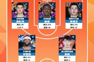 2025-2026賽季CBA聯(lián)賽常規(guī)賽第7輪結(jié)束較量,來(lái)自北京控股籃球俱樂(lè)部的朱松瑋和佩里,南京同曦籃球俱樂(lè)的郭昊文,寧波富邦町渥男籃的辛普森和浙江稠州籃球俱樂(lè)部的吳前入選CBA聯(lián)賽常規(guī)賽第7輪最佳陣容!