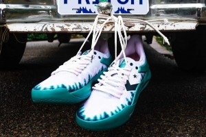這雙Converse BB Trilliant PE設(shè)計(jì)靈感來源于他的家鄉(xiāng)俄勒岡州。俄勒岡州有“玫瑰之州”的昵稱,州花就是玫瑰,呼應(yīng)鞋墊元素,同時(shí)右腳鞋墊上還有他的個(gè)人Logo。而常綠針葉林,是俄勒岡州的代表性樹種之一,也呼應(yīng)鞋面的樹紋圖案。