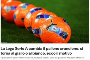 意甲聯(lián)盟被迫更換從聯(lián)賽第12輪起使用的、曾引發(fā)討論的熒光橙色足球,這一更換將在2026年初及下半賽季開始之際進(jìn)行,但不會立即實(shí)施,該決定是在眾多色盲球迷投訴無法在球場中辨識足球后作出的。