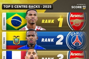 以下是2025年最佳中后衛(wèi)前五榜單: