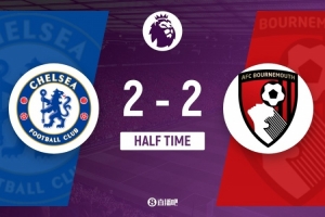 體育資訊12月31日訊 北京時(shí)間12月31日凌晨3時(shí)30分,英超第19輪,切爾西坐鎮(zhèn)斯坦福橋球場(chǎng)迎戰(zhàn)伯恩茅斯。上半場(chǎng),布魯克斯首開紀(jì)錄,隨后埃斯特旺造點(diǎn),帕爾默點(diǎn)射破門,恩佐反超,克魯伊維特扳平。半場(chǎng)戰(zhàn)罷,切爾西暫2-2戰(zhàn)平伯恩茅斯。