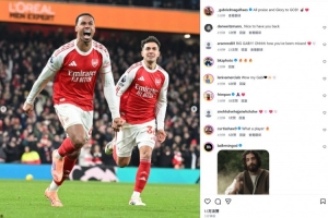本場比賽加布里埃爾破門先拔頭籌,賽后當(dāng)選英超官方全場最佳。他也在個人社媒曬出本場慶祝照片,配文寫道:“所有贊美和榮耀歸于上帝!”