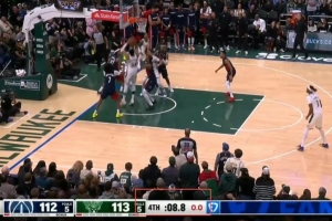 GIF-字母哥還剩8.8秒時(shí)拿到前場(chǎng)籃板立刻起身補(bǔ)籃沒(méi)進(jìn)